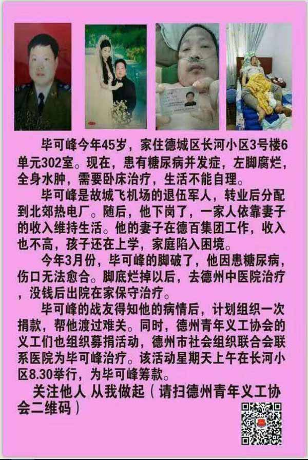 2016年8月21日,本协会对长河小区的糖尿病并发症患者毕可峰进行现场捐助。