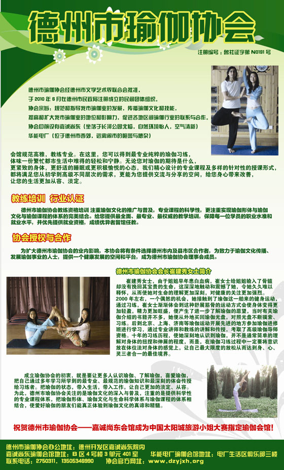 版权所有: 德州市瑜伽协会 电话:0534-2750311 13505346990 地址:三八东路悦成园(老格瑞德院内)禅修瑜伽