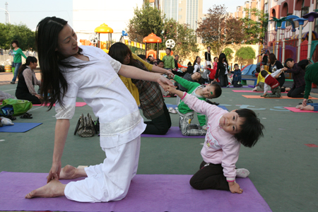六一期间,,德州市瑜伽协会崔会长,受德州市直幼儿园之邀,免费为幼儿园的家长和孩子,传授亲子瑜伽的体式和要领,增加家长和孩子之间的亲情,场面非常融洽,孩子们非常高兴,展现一幅其乐融融的画面。